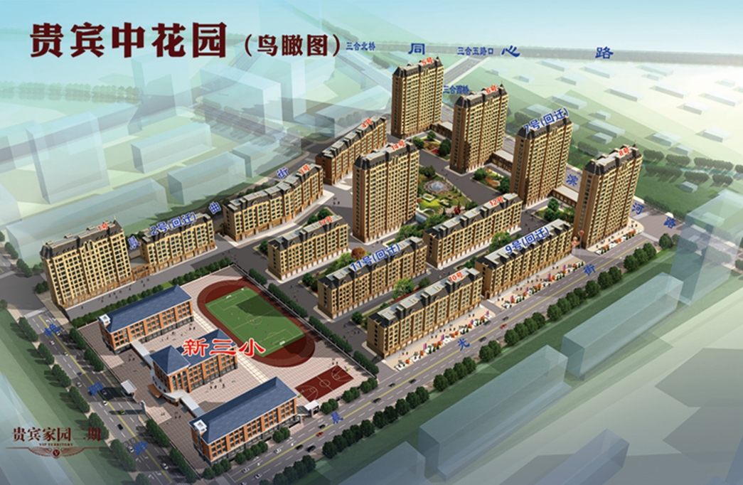 位于貴賓中花園東側(cè),三合西橋西側(cè),2016年7月開工建設(shè),于2021月10月30日全部竣工并交付使用。項(xiàng)目占地20764.12平方米,筑有6棟住宅樓,總建筑面積6.9萬平方米。